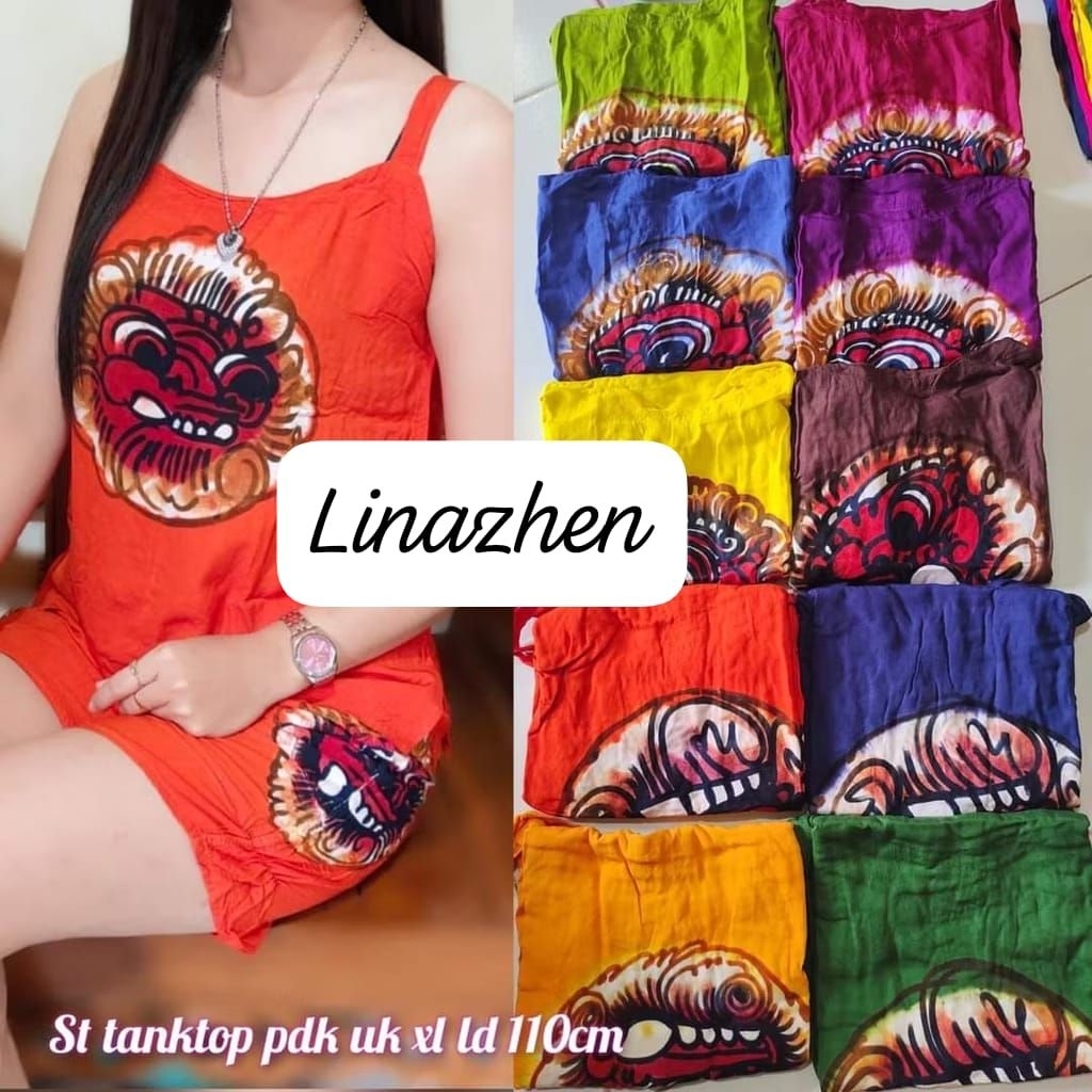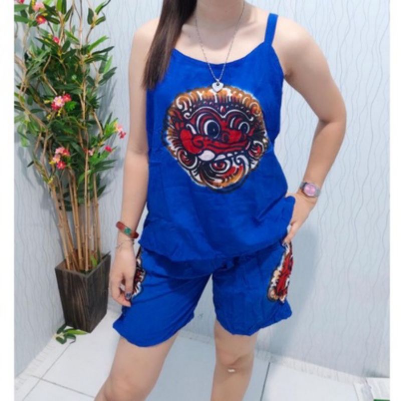 Stelan tanktop bali barong Size M L XL XXL celana pendek bahan rayon adem