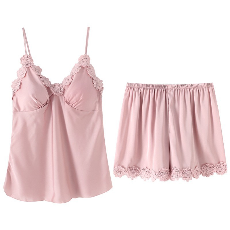 Stelan Baju Tidur Lingerie / Vee-lingerie Silk Tanktop & Celana Pendek / Piyama Wanita Kekinian Dengan Renda Halus