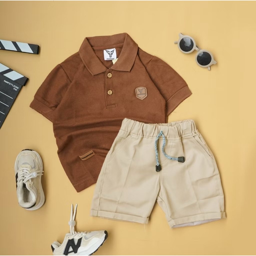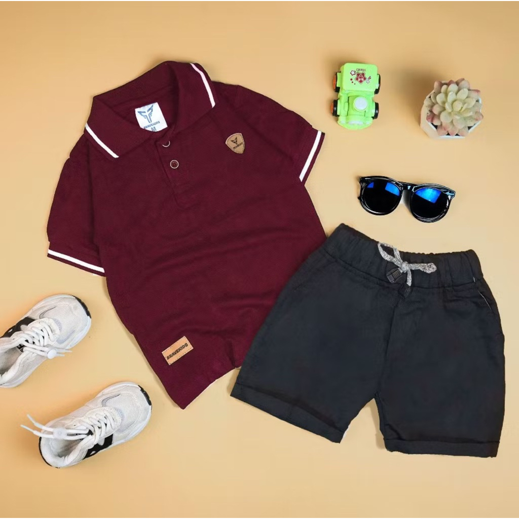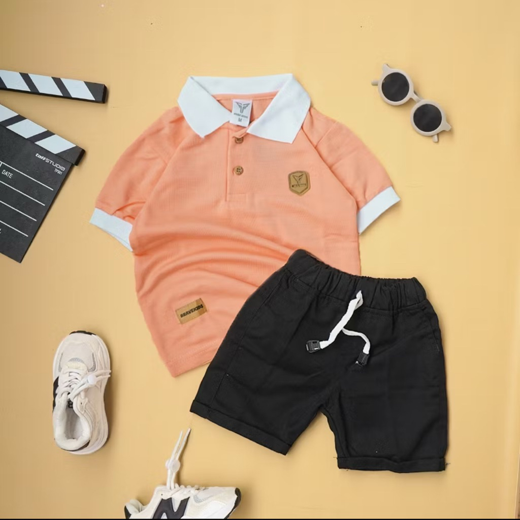 Setelan Kaos Kerah Anak Laki Laki Cotton Pique Celana Broadshort Bravekids