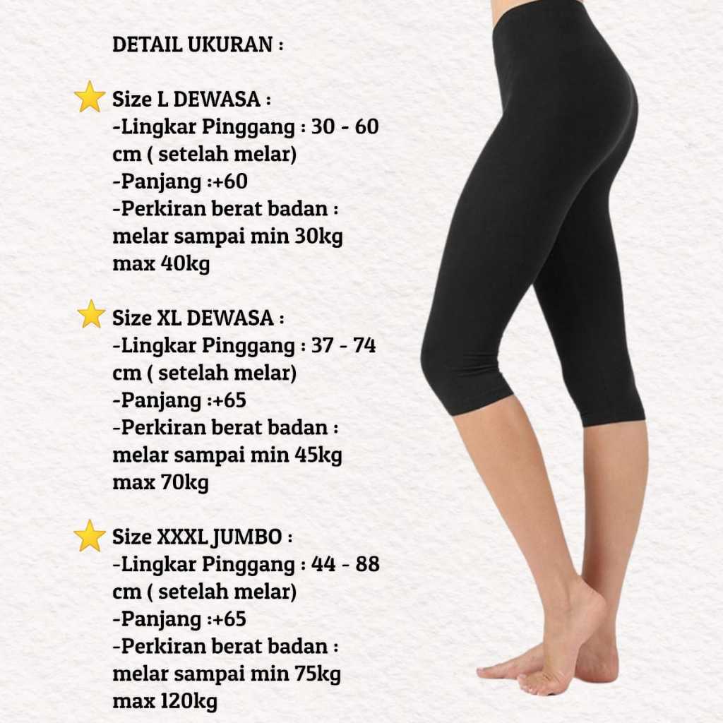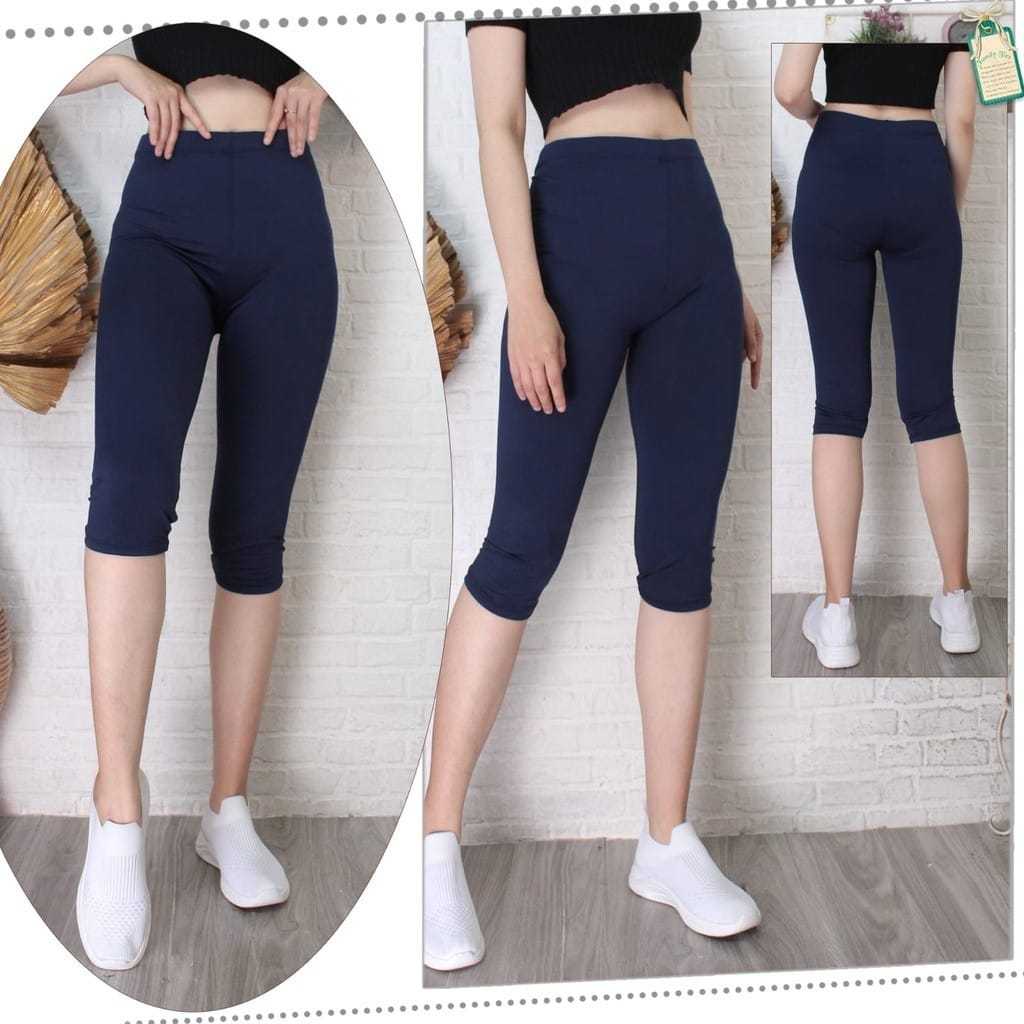 Celana Legging Selutut 7/8 Pendek Olahraga Wanita Polos Standar & Jumbo