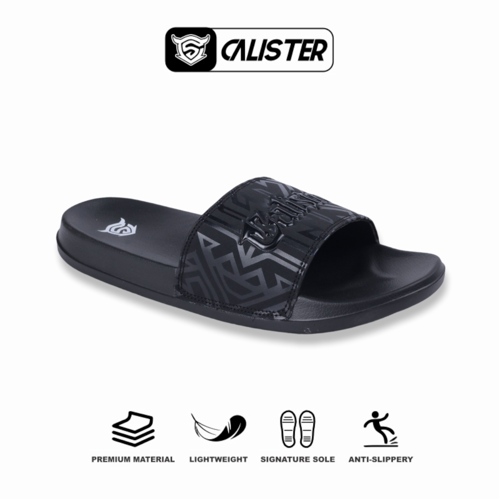Sandal Pria Calister Full Black Evolution Font Simple Trendy