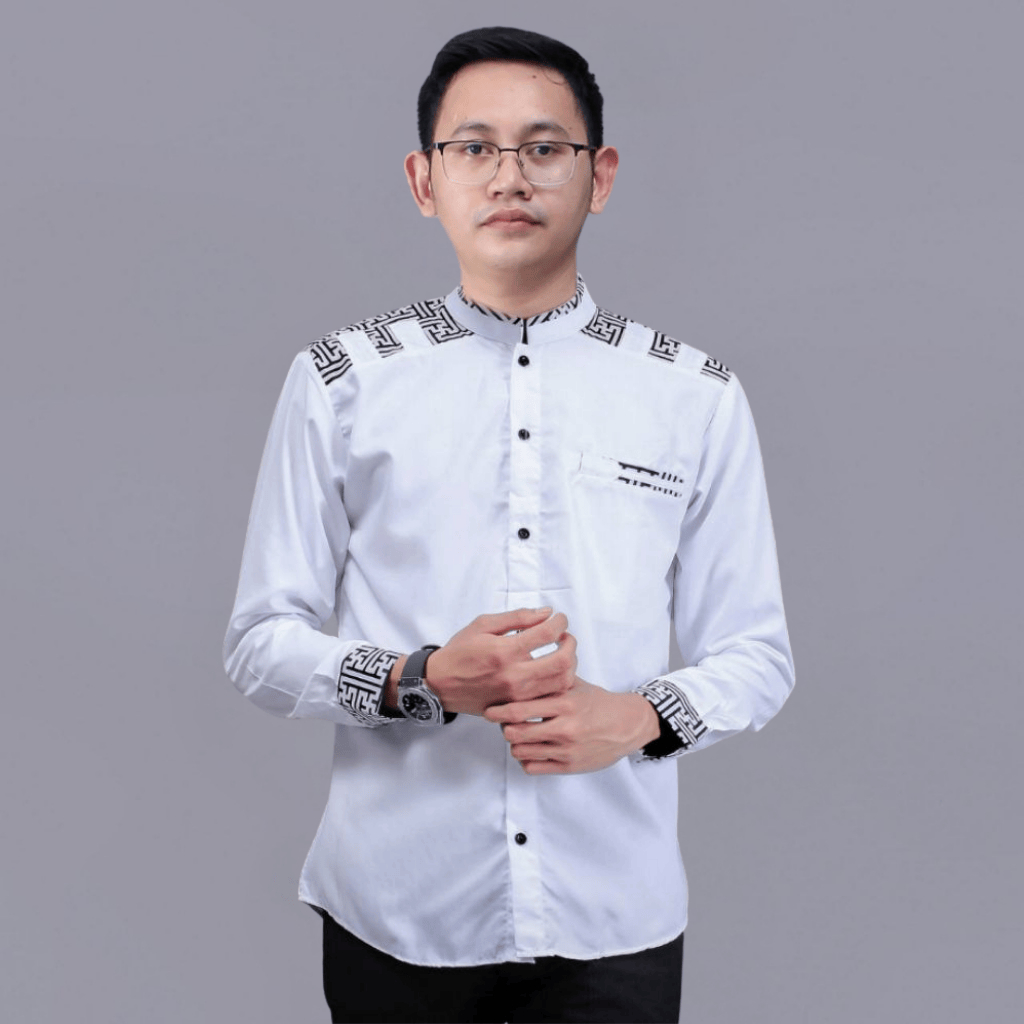 Baju Koko Pria Lengan Panjang El Rumi Terbaru Warna Putih Terlaris Kombinasi Batik