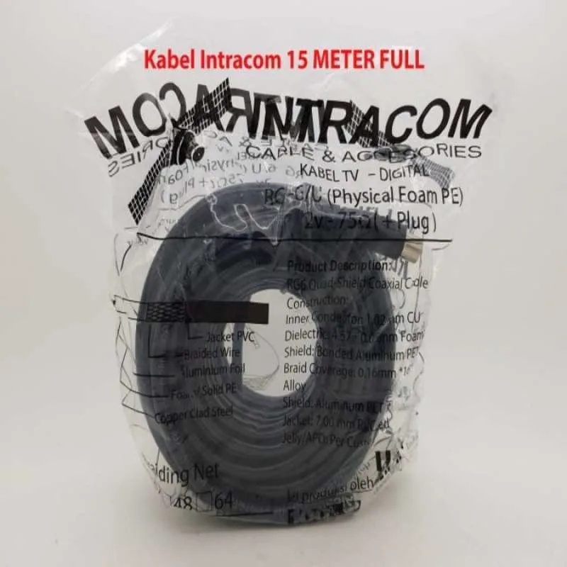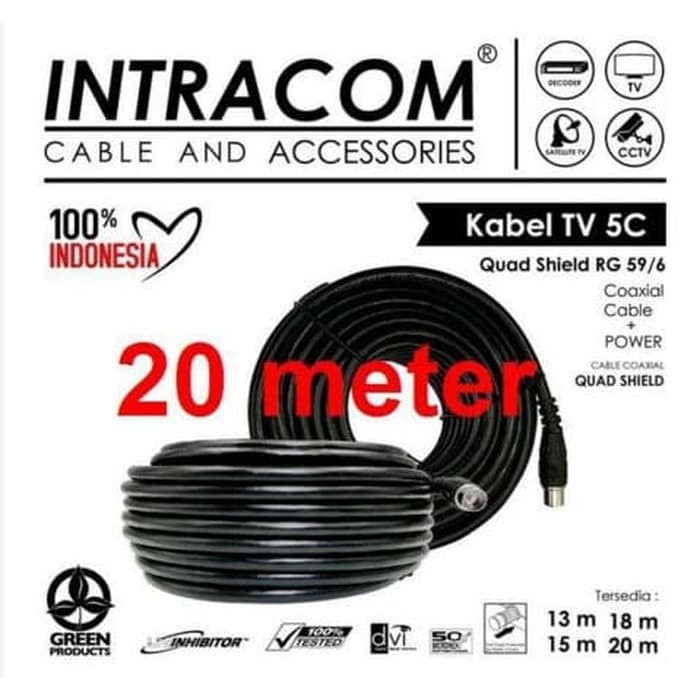 Kabel Antena TV Digital Analog INTRACOM RG6 C5 Panjang 20 Meter Original