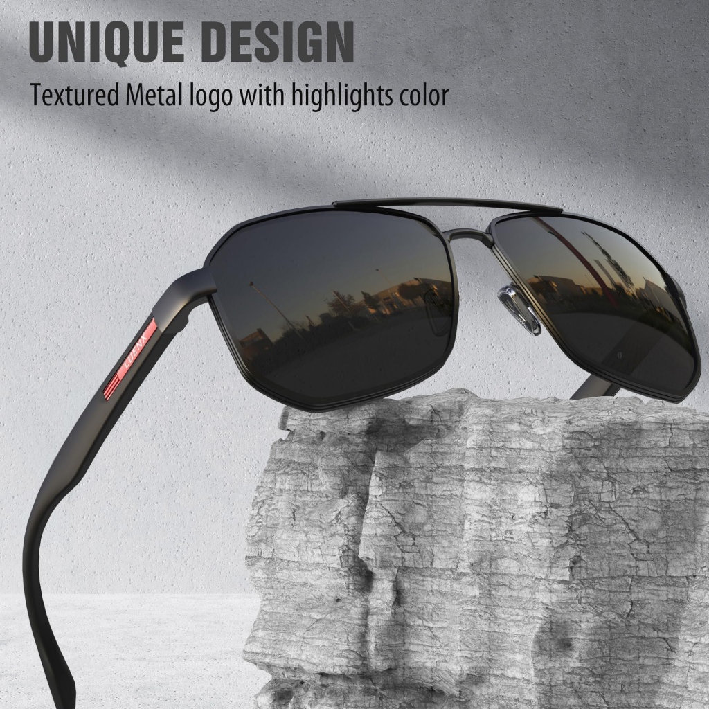 Luenx Kacamata Hitam Aviator Sunglasses Unisex Square Polarized Polygon Lens - UV 400 Protection with Accessories 61MM Driving Outdoor 6408-1