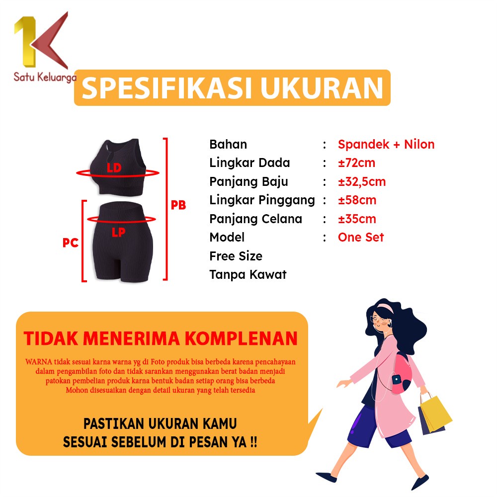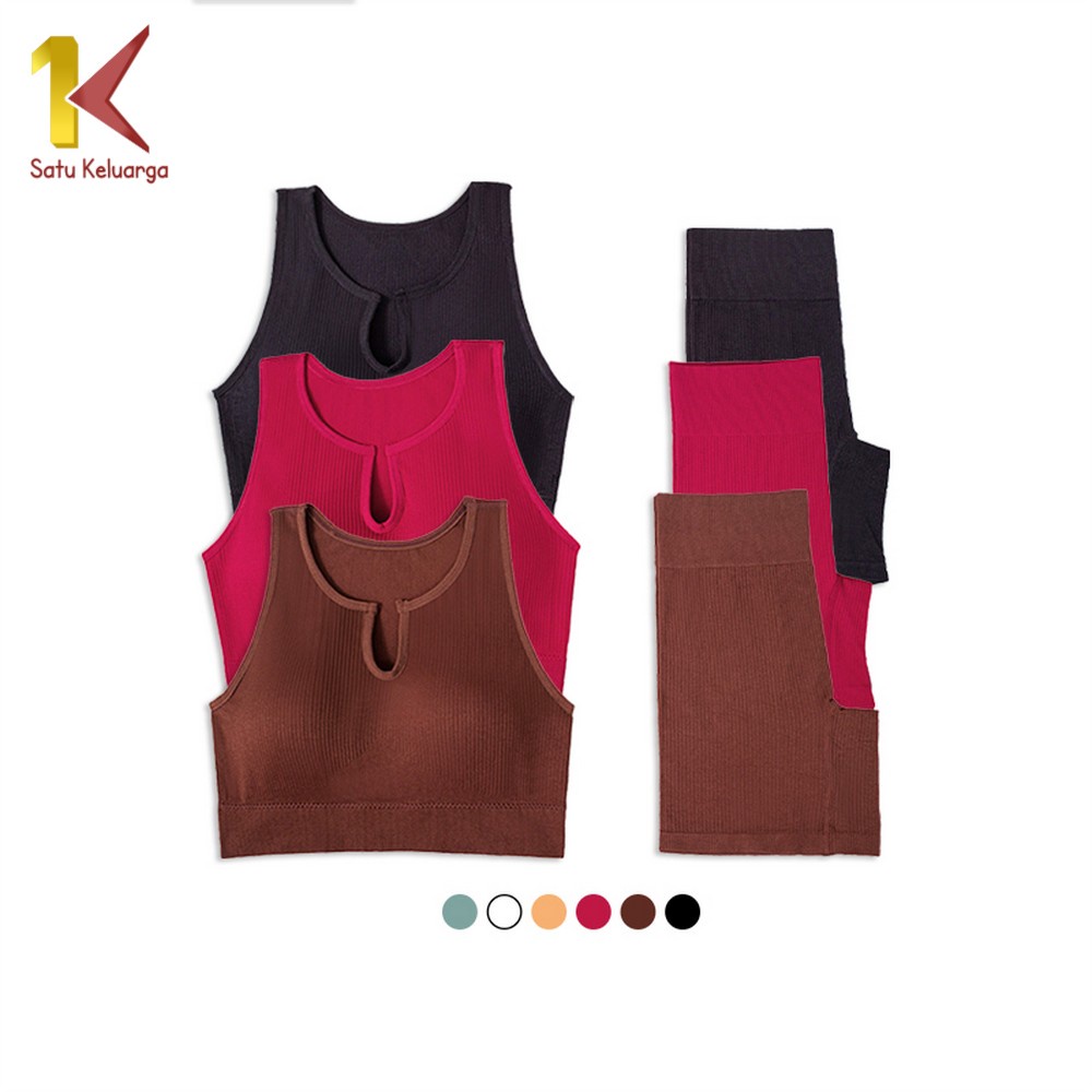 1K Tanktop Wanita One Set Celana Pendek Model Vneck Push Up Elastis P365 Set Sport Bra Hotpants Women Fashion