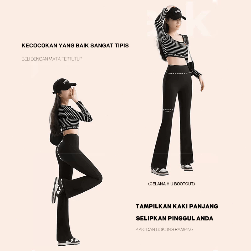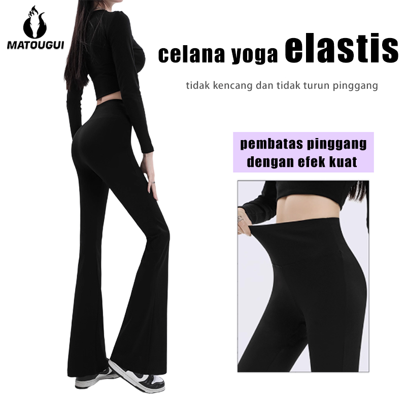 Celana Olahraga Wanita Matougui Legging Yoga Pilates Peregangan Celana Flared Leggings