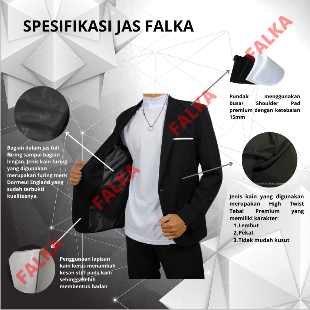 FLASH SALE FALKA | 3 In 1 Setelan Jas Formal Pria (Jas, Rompi, dan Celana) model Slimfit bahan High Twist Tebal