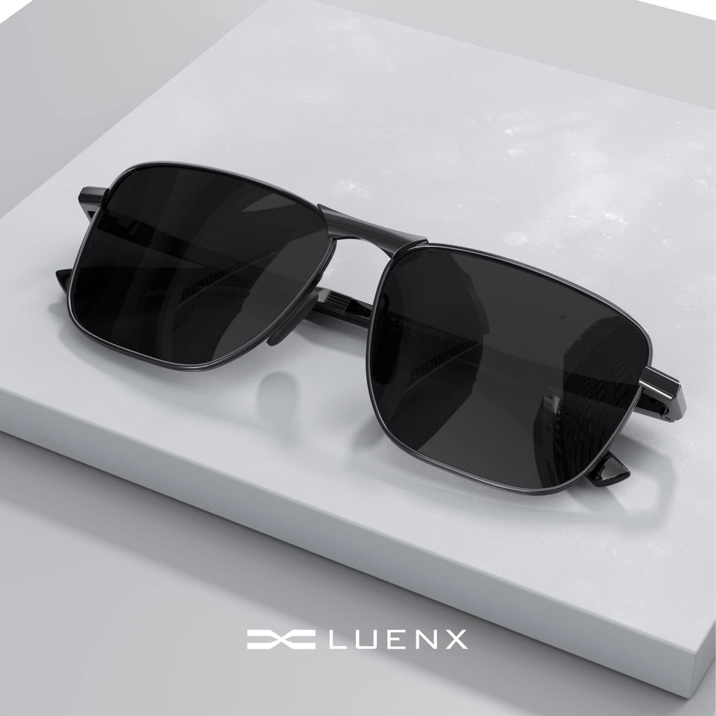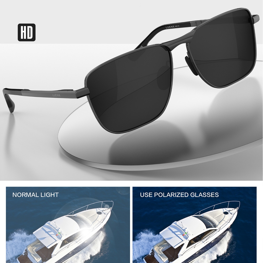 Luenx Kacamata Hitam Rectangular Polarized Aviator Sunglasses Unisex Retro Pilot Shades Driving UV400 Protection 6405-2