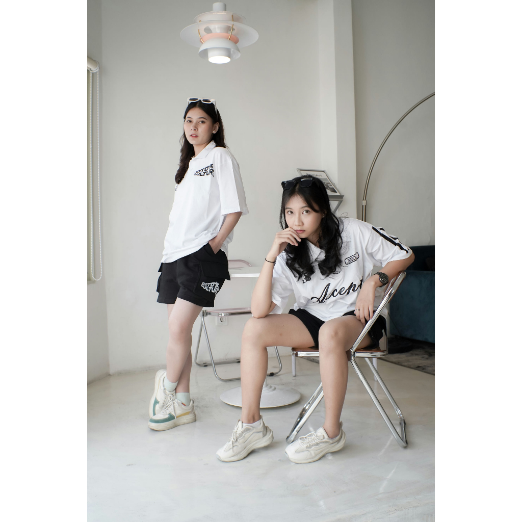 FLASH SALE Oversize Polo Shirt Culture Black & White l Kaos Oversize Pria dan Wanita OVZPS001