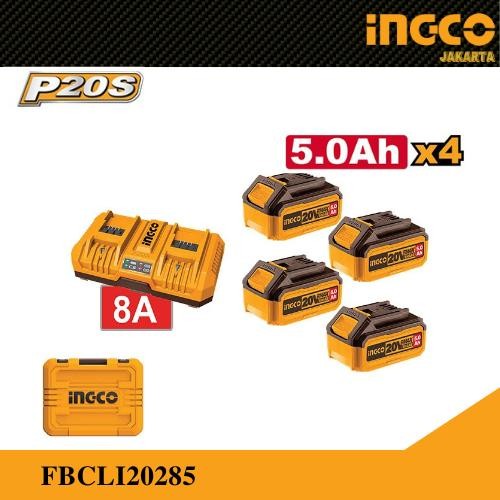 P20S Paket Baterai 5Ah (4pcs) + Dual Charger 8Ah Battery Cas INGCO Cordless 20V FBCLI20285