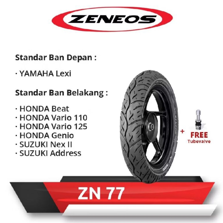 Dot 2025 - Ban motor Zeneos ZN77 (70/90-14 , 80/90-14, 90/90-14) Ring 17, Ring 12 Ring 12 Tubeless - Pilih varian