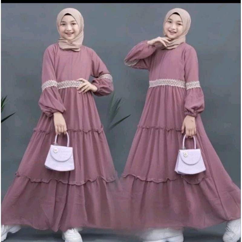 Baju Gamis Anak Putih Perempuan Usia 4-13 Tahun Variasi Renda Bahan Crinkle Airflow Terbaru Kekinian