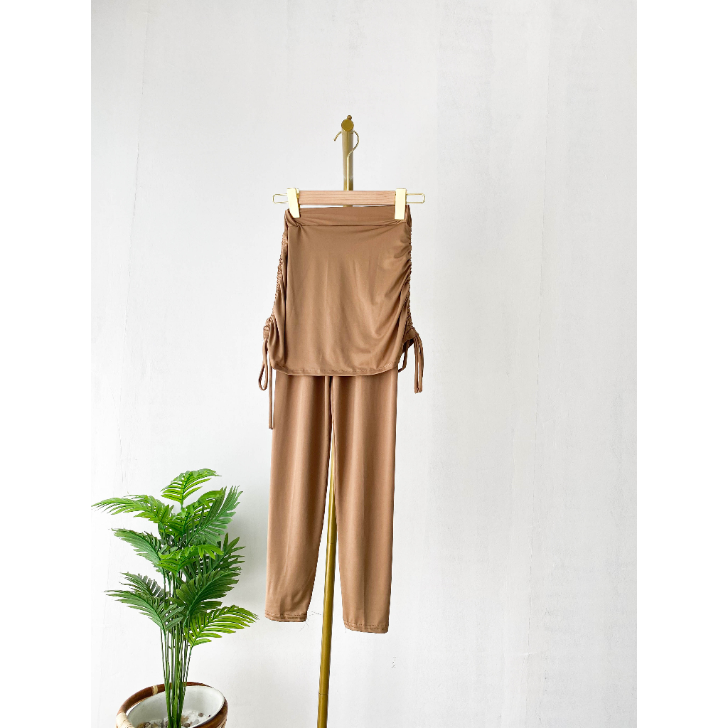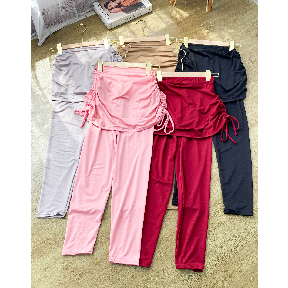 Legging Rok Serut Polos Pgs Celana Legging Olahraga Skirt 2In1
