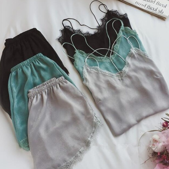 Piyama Stelan Tanktop Motif Renda Polyester SLC44
