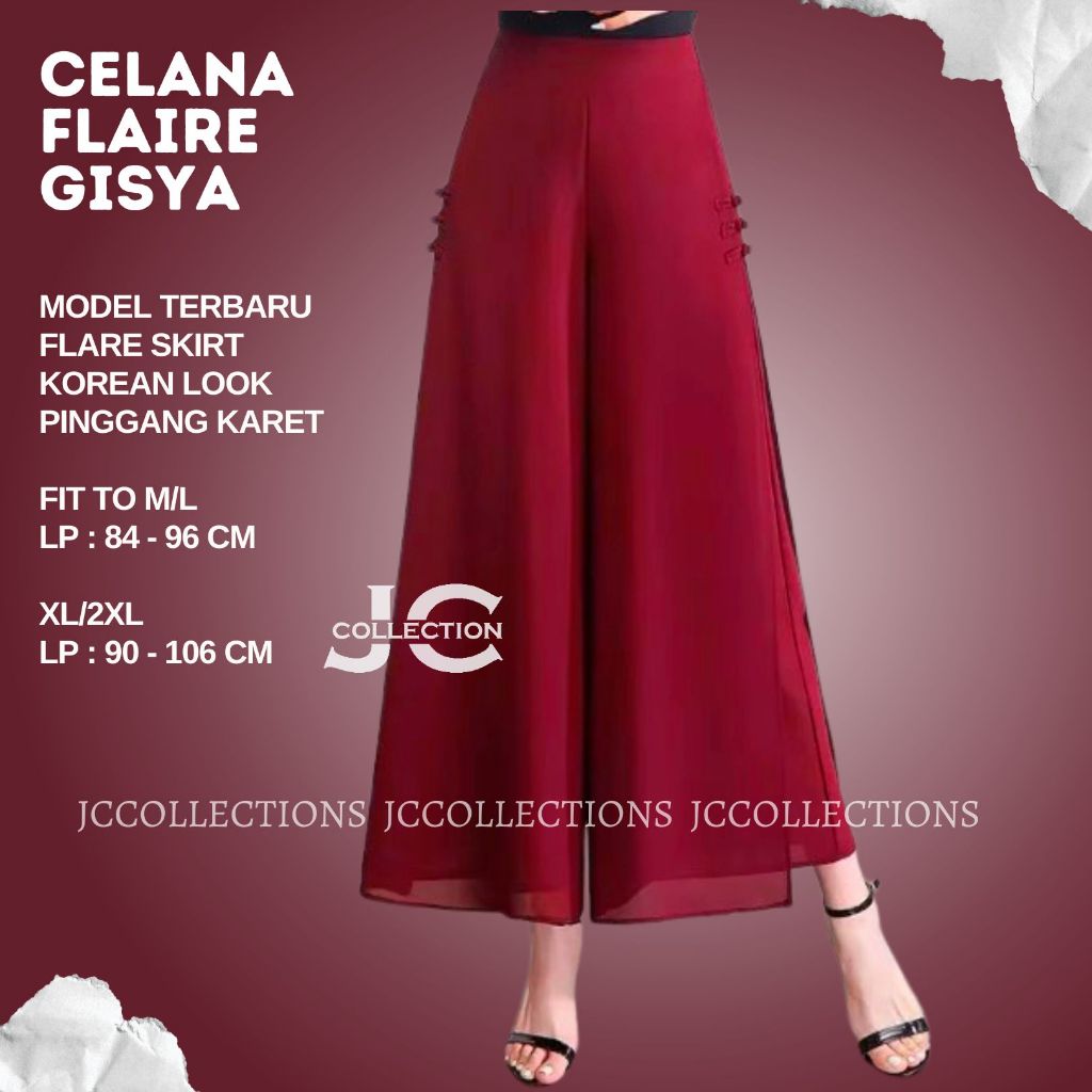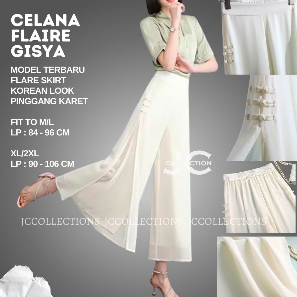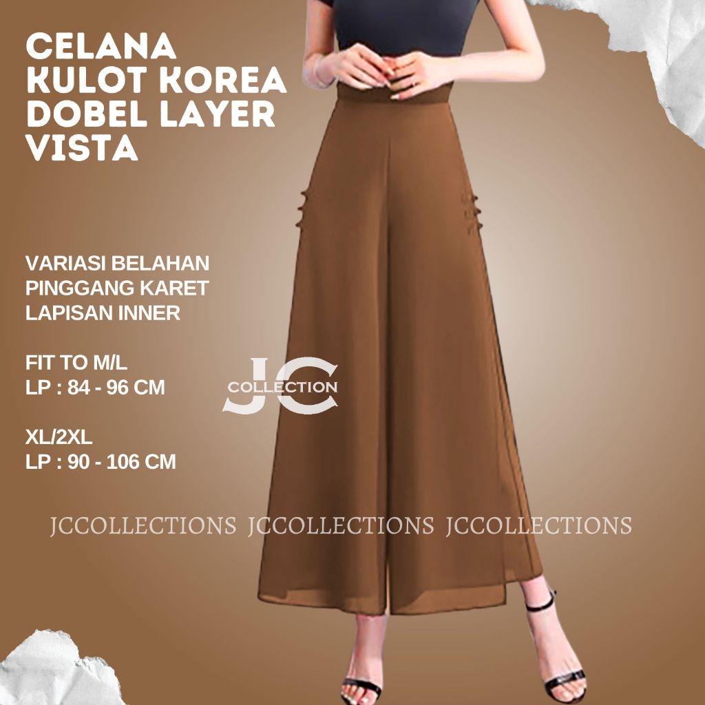 Celana Kulot Wanita Sifon Korea Style Dobel Layer & Pita Vista Elastic Waist Vista By Jccollections