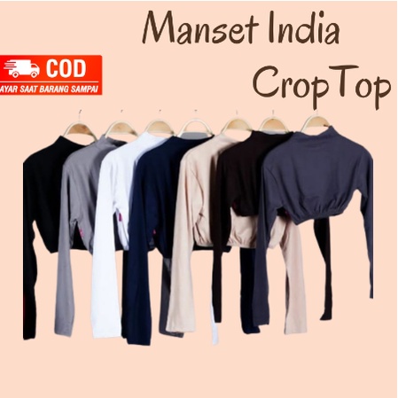 Manset India Lengan Panjang Bahan Rayon Super Crop Top Atau Kaos Dalaman