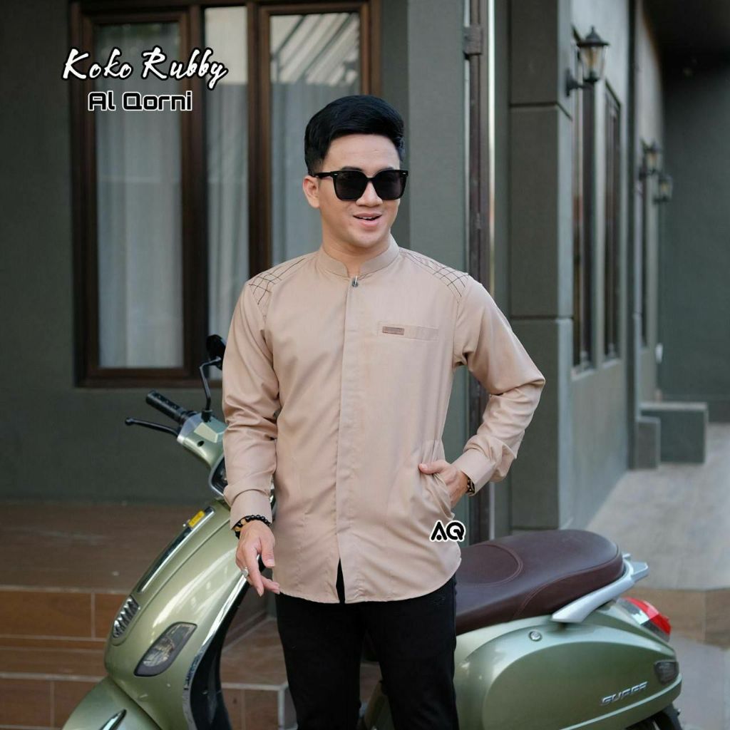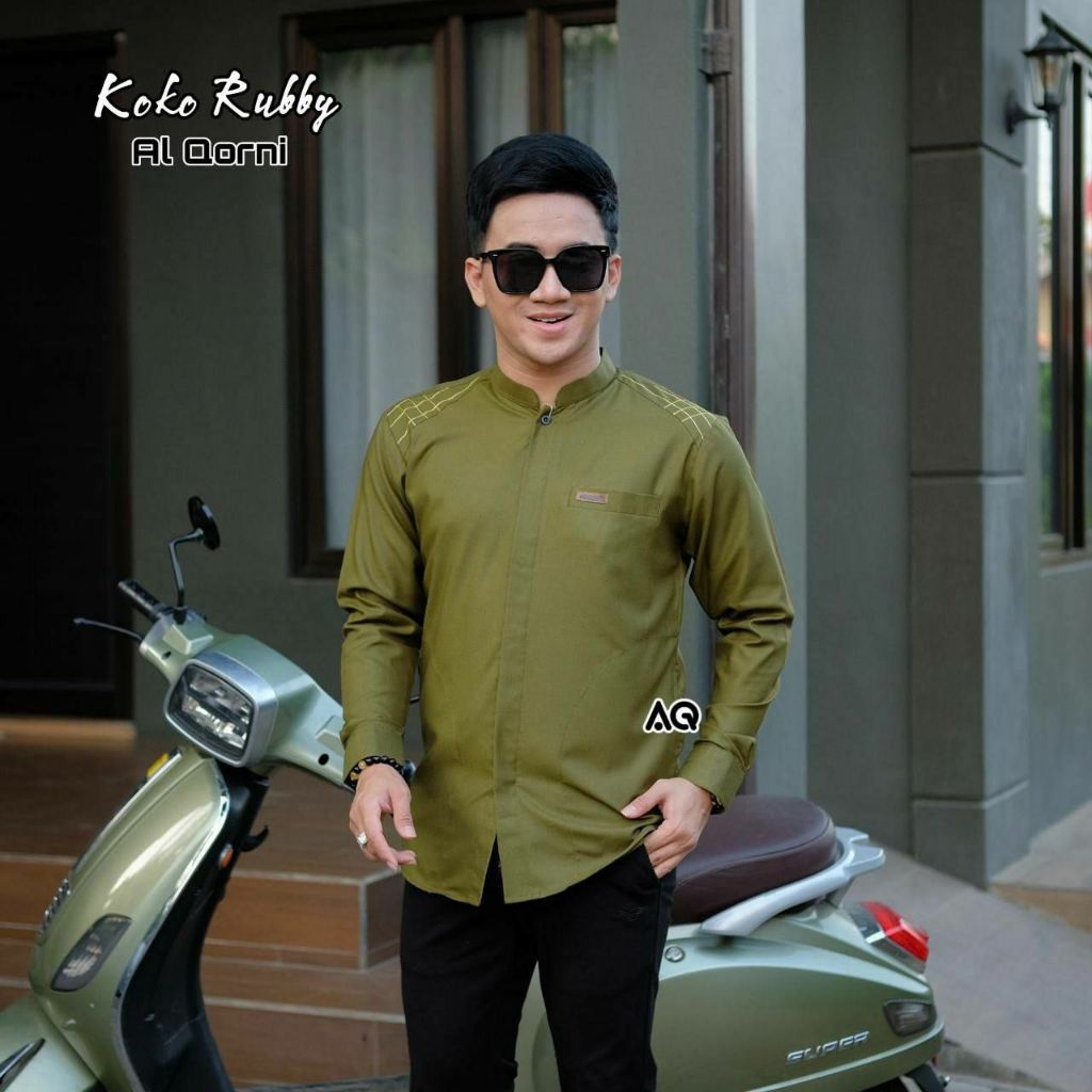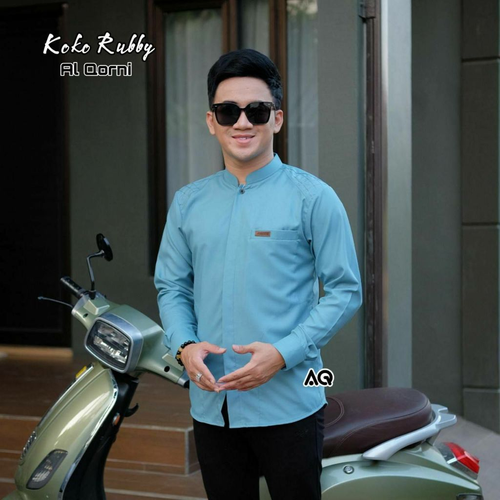 Baju Koko Polos Pria Fashion Lengan Panjang Motif Rubby