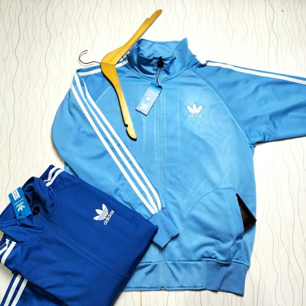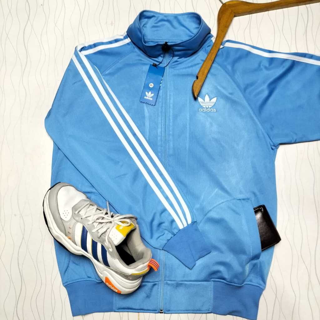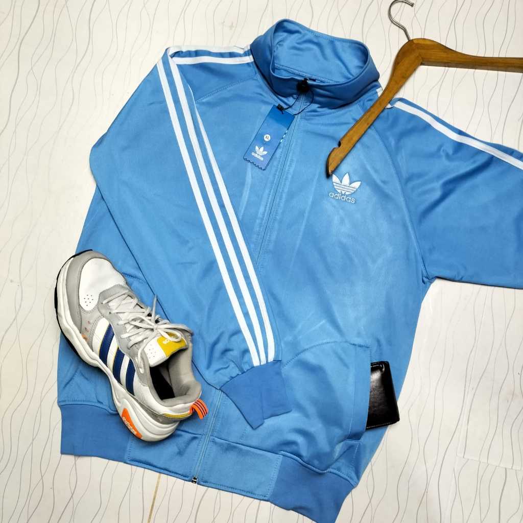 jaket zipper tracktop adidas bahan lotto premium warna biru muda