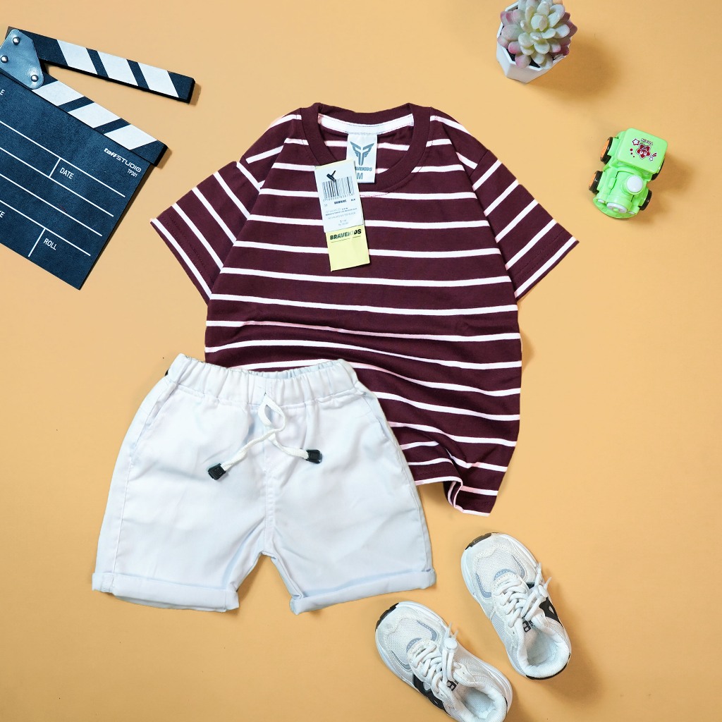 Setelan Anak Kaos Dan Celana Cotton Combed 24S Sablon Plastisolbravekids Broadstripe