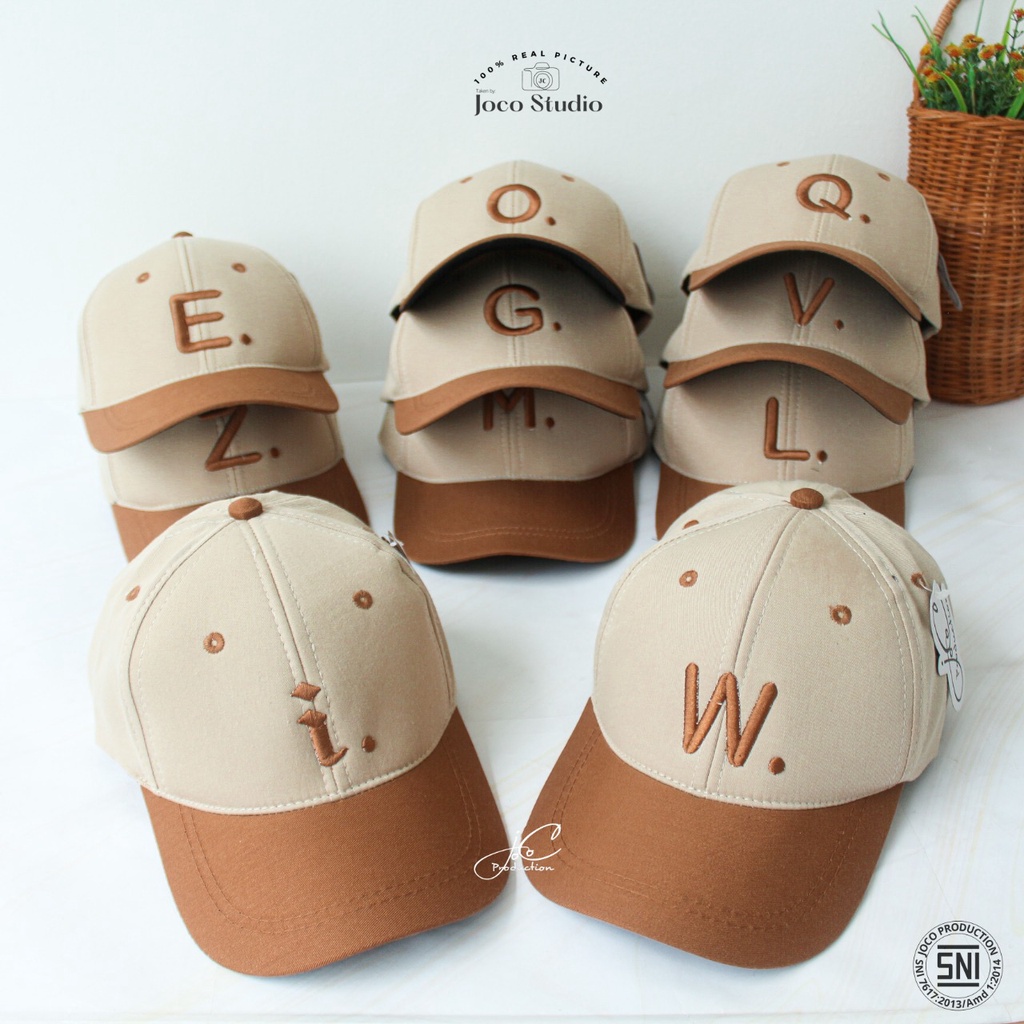Topi Anak Fashion Baseball Premium Unisex 3 7 Tahun Bordir Alfabet Cream Coklat Jocoproduction
