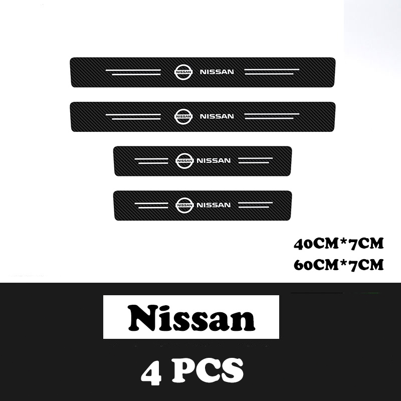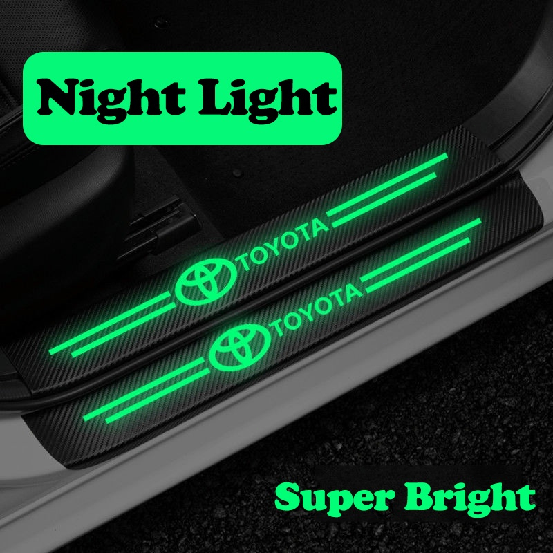 4Pcs Bercahaya Strip Pelindung Bahan Kulit Carbon 3D Door Sill Plate Guard Pintu Mobil Stiker
