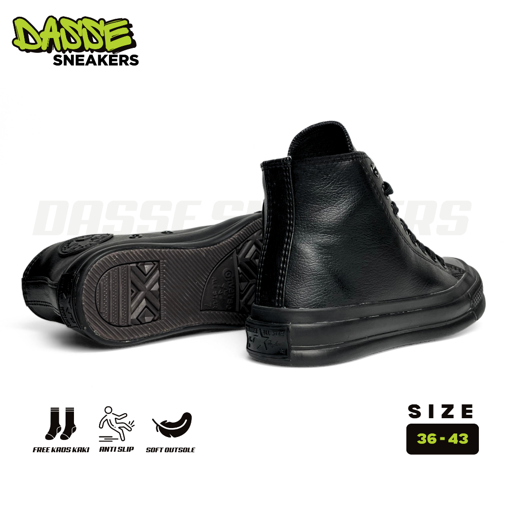 Dasse Sneakers - Converse High Leather Full Black - Sepatu Sneakers Casual Klasik Pria & Wanita