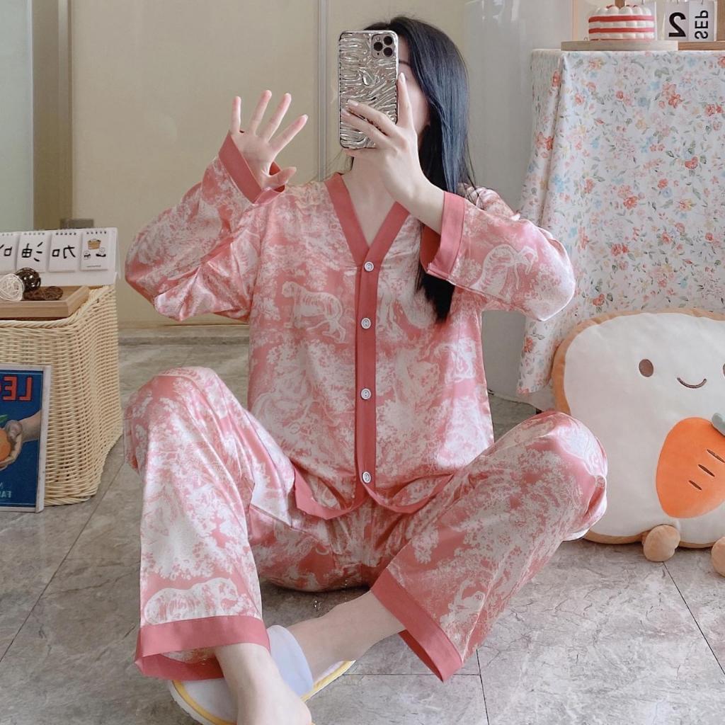 MyLadiesShop - MLS004 - Baju Tidur Wanita Piyama Satin Lengan Panjang Motif Trendy Super Adem Nyaman