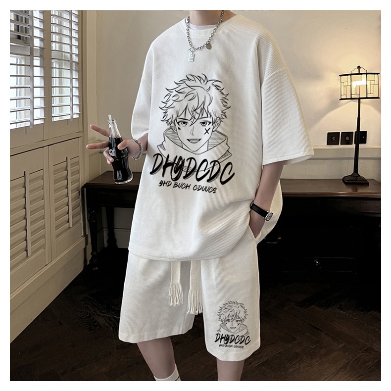FLASH SALE Ssmy TZ09 Setelan Sablon Set Karakter Anime Man Cool Celana+Kaos Pria Women Fashion One Set Waffle
