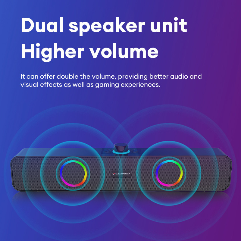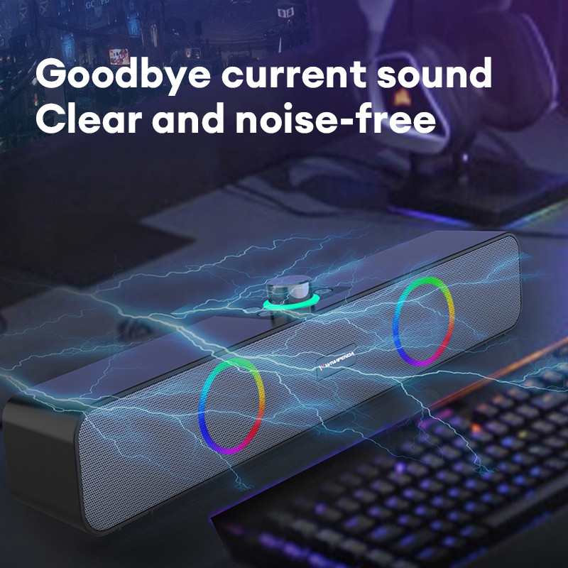 Speaker Soundbar RGB 1200mAh, Surround Sound 10W Subwoofer Stereo Bass Max Bluetooth 5.3