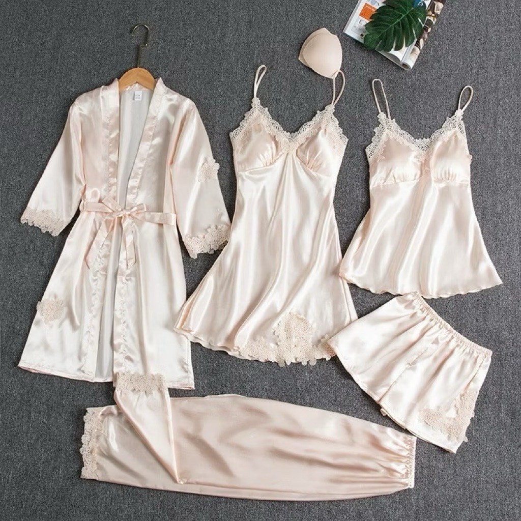 PIYAMA SET KIMONO 5 IN 1/ BAJU TIDUR SATIN WANITA HIGH QUALITY PREMIUM