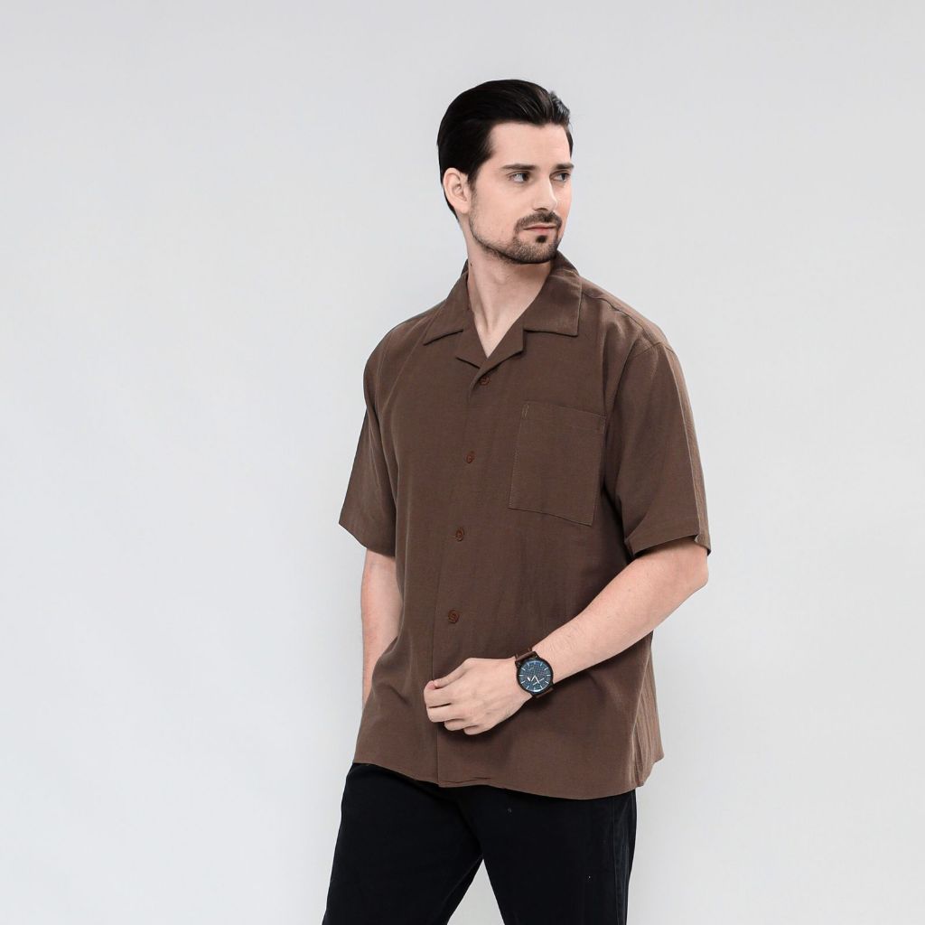 Kemeja Oversize Pria [Wrestlerstudio] Cuban Bowling Oversize Linen Texture Premium