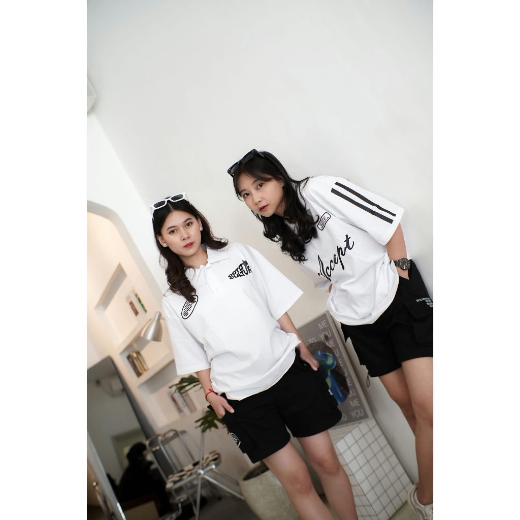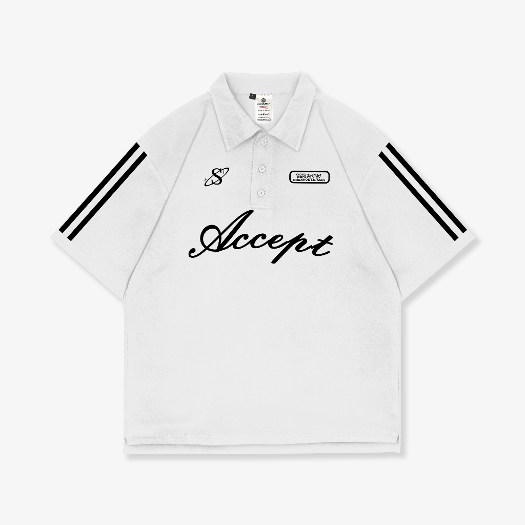 FLASH SALE Oversize Polo Shirt Accept Line White & Black l Kaos Oversize Pria dan Wanita OVZPS003