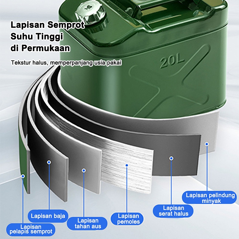 Tangki Bahan Bakar Tangki Bensin Logam Hijau 10L 20L 30L Tangki Kontainer Luang Kapasitas Besar