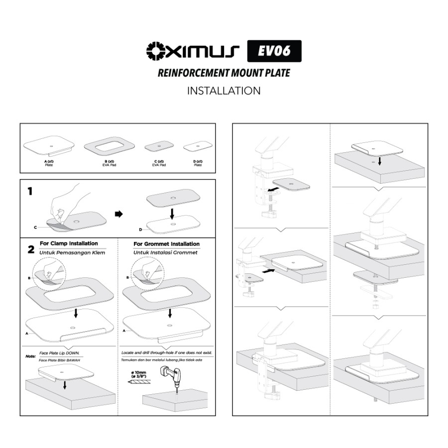 Kit Plate Plat Penguat Protektor Pengaman Meja Bracket OXIMUS EV06