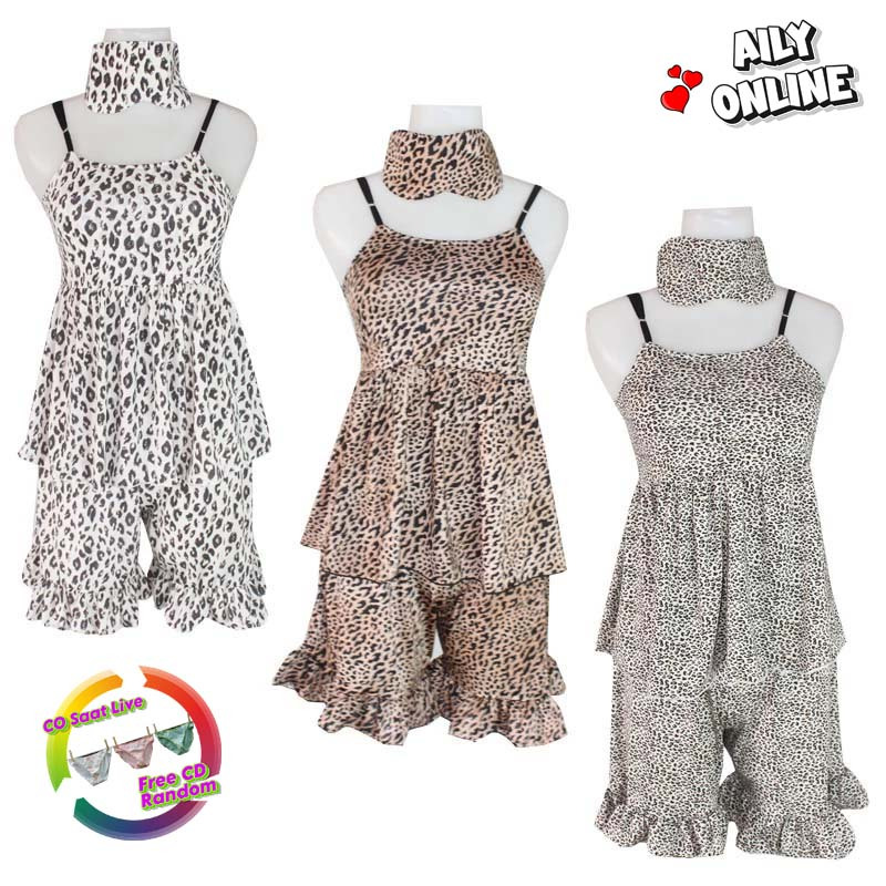 [FREE PENUTUP MATA] Aily SM50 Setelan Baju Tidur Wanita Motif Macan Celana Pendek + Tanktop