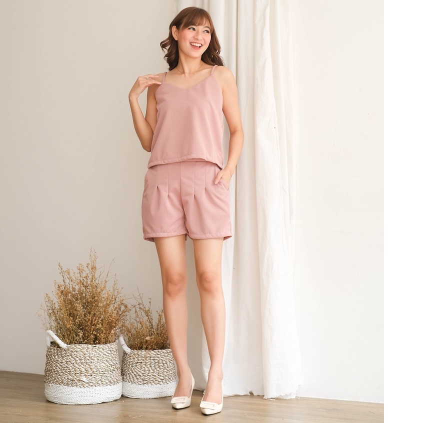 C2W Clothtowear Tank Top dan Celana Pendek Wanita All Size 1 Set Motif Polos Women's Clothes 993-CLN