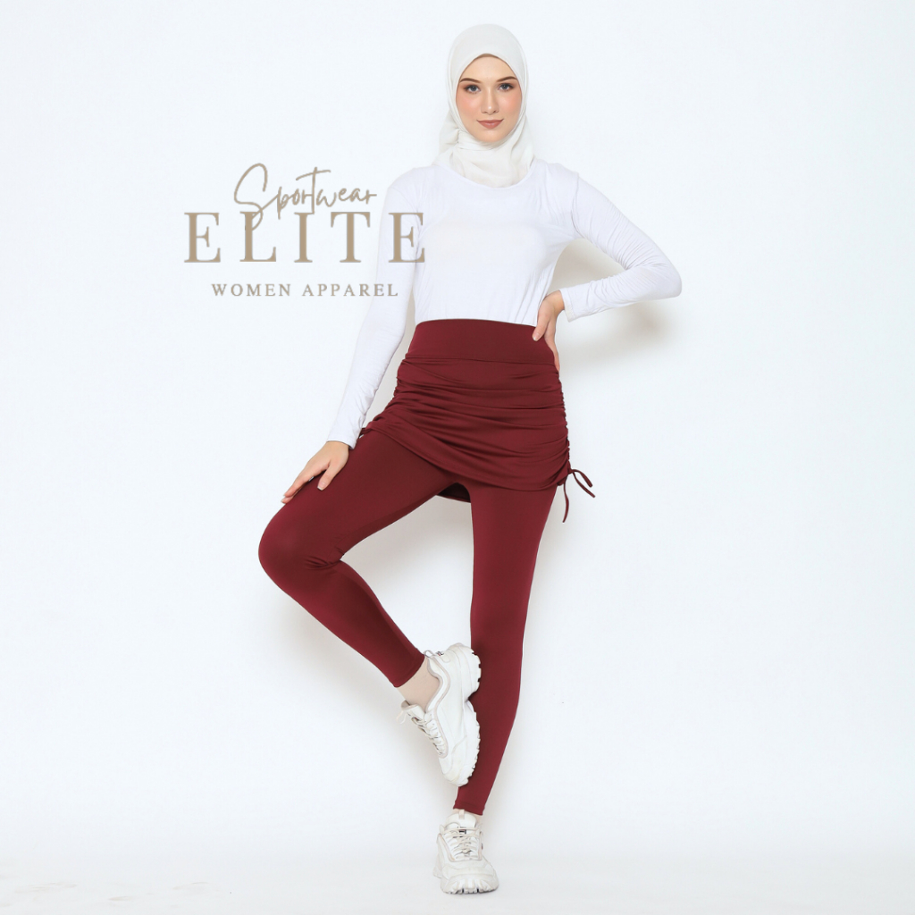 Legging Skirt 2In1 Drawstring Elite Legging Sport Hight Waist Free Kaos Kaki