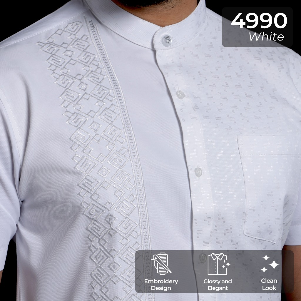 Baju Koko Putih Pria Lengan Pendek Arabesque Embroidery White Design By Casella