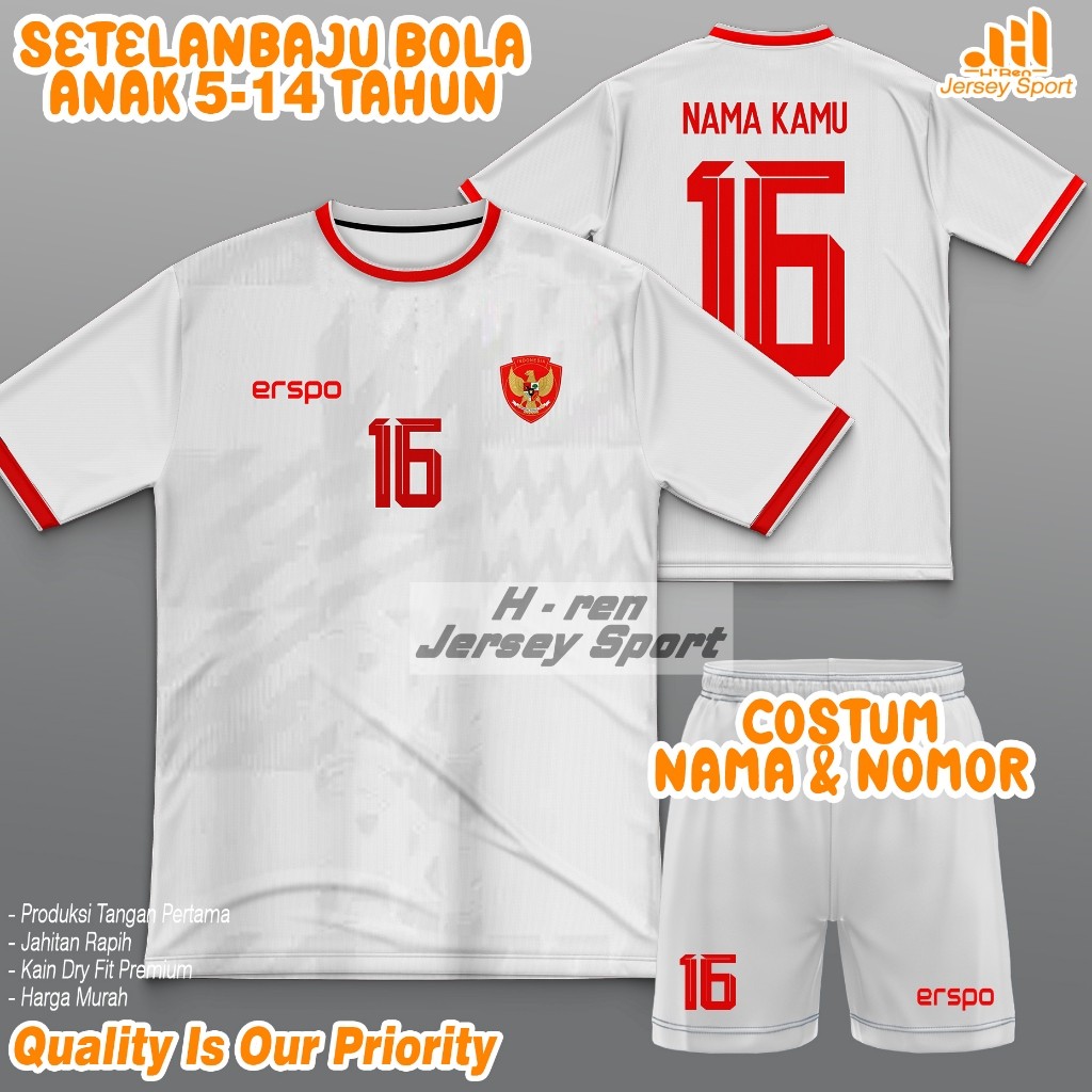 Sablon Nama Nomor Setelan Baju Bola Jersey TIMNAS ERSPO 2025 Indonesia Anak Terbaru Futsal Voly
