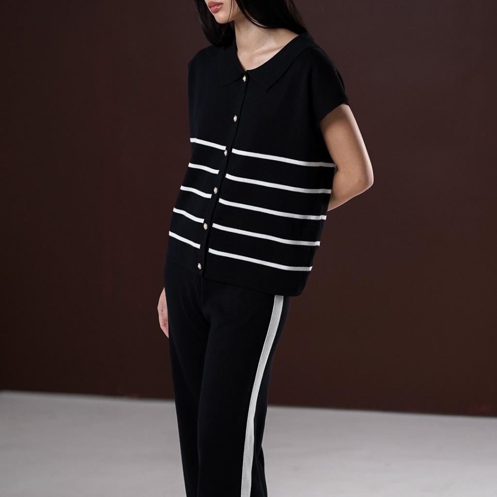 This Is April Leona Set Setelan Knit Wanita Atasan Tanpa Lengan Celana Panjang Black (RESTOCK)