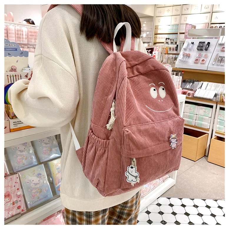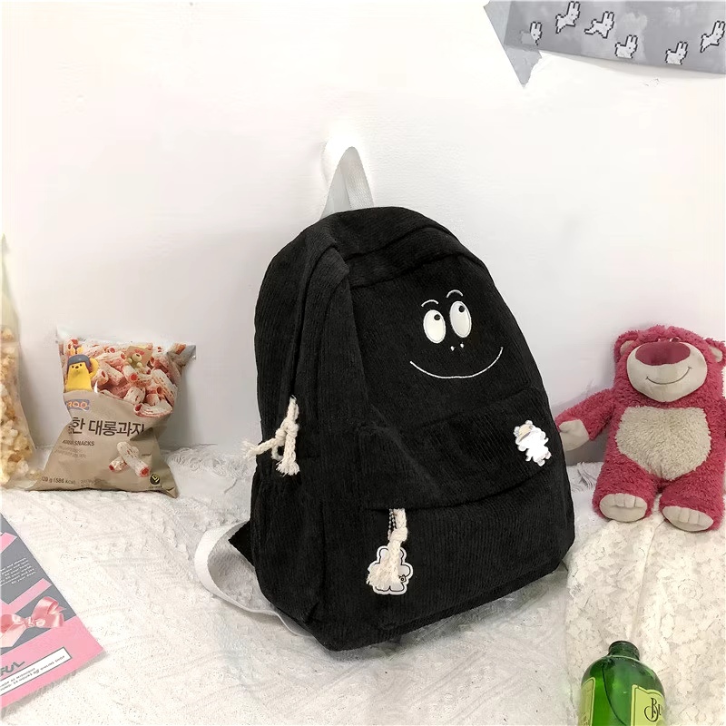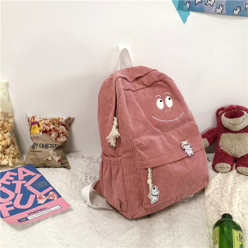 Tas Ransel Corduroy Muka Senyum Tas Sekolah Cewe Smiley Face Backpack Korduroi Perempuan Korean Style
