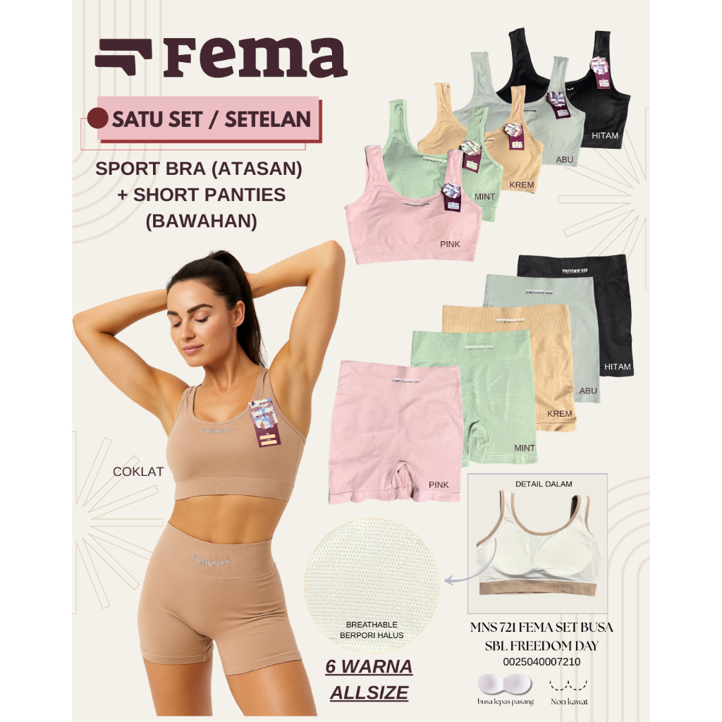 [Special Price] FEMA Official Shop SETELAN Olahraga / Satu Set 721 Outfit Padel Sport Bra Legging