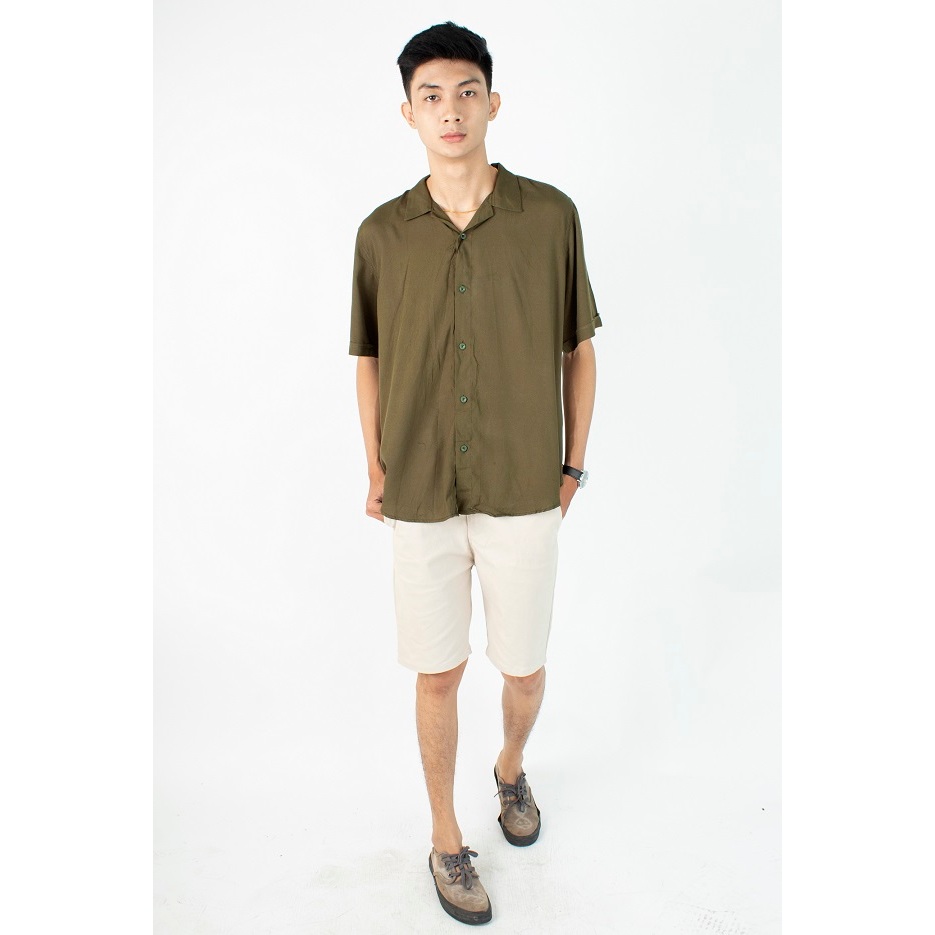 FLASH SALE Kemeja Rayon Polos Pria Lengan Pendek Hem Pria Kemeja pantai santai Earth Tone Distro