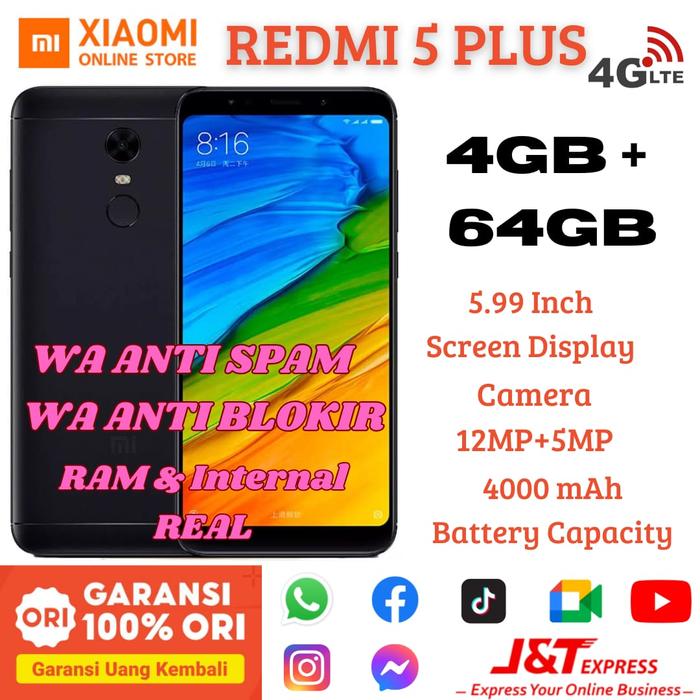 Xiaomi Redmi 5 Plus Ram 4/64 Garansi Distributor 1 Tahun - Hitam