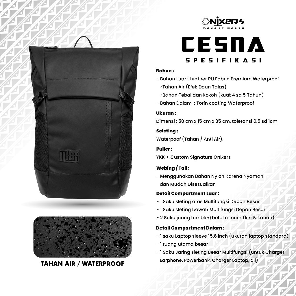 Tas Laptop Ransel Pria | Sekolah Kantor Kerja Waterproof