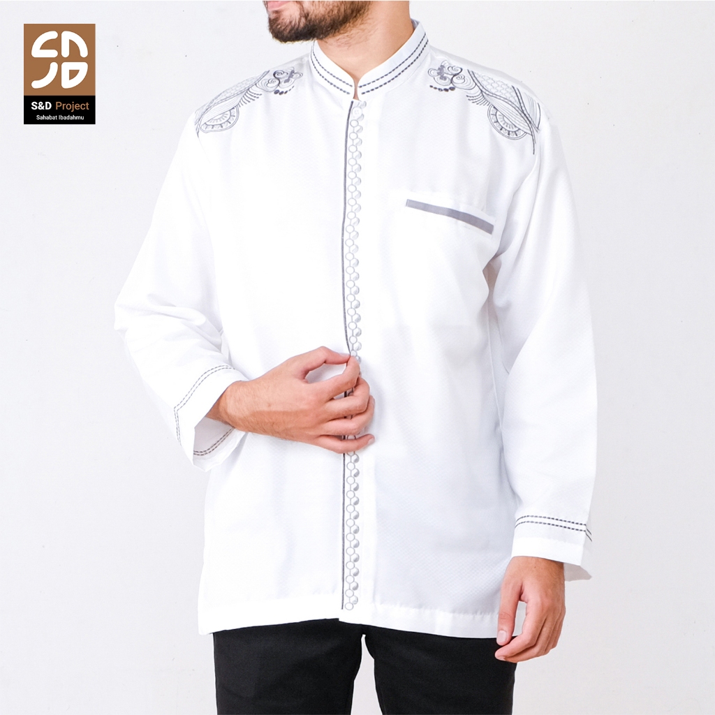 Baju Koko Muslim Seri 01 Bordir Polikatun Putih Tulang Jumbo M 4Xl Pria Dewasa Lengan Panjang By S&D Project