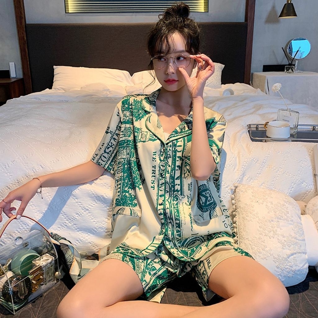 ME² PREMIUM PAJAMAS - Piyama Satin Premium Set Korean Style/Ice Silk Sleepwear, Lengan Pendek ,Celana Pendek Sutra Es/Pi