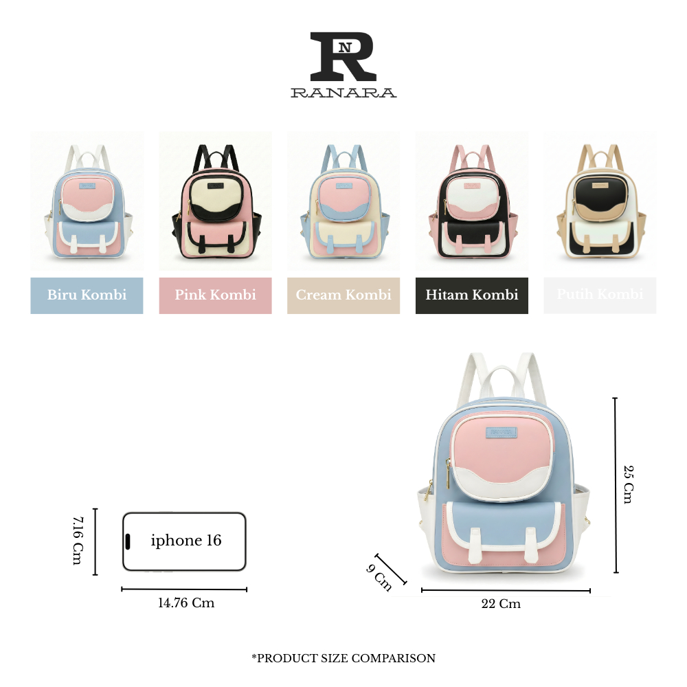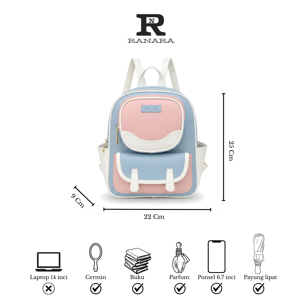RANARA KODE RN03 Tas Ransel Mini Wanita Tas Backpack Kombinasi Multifungsi