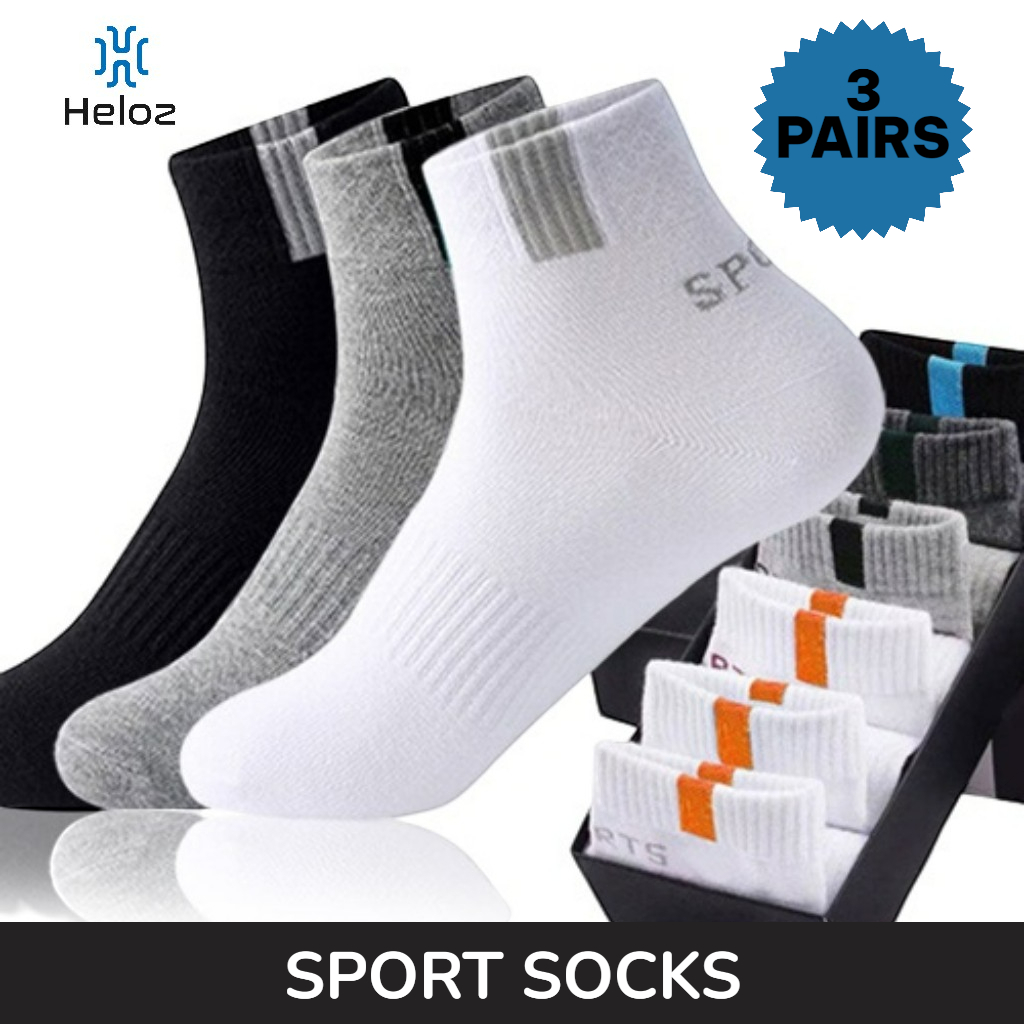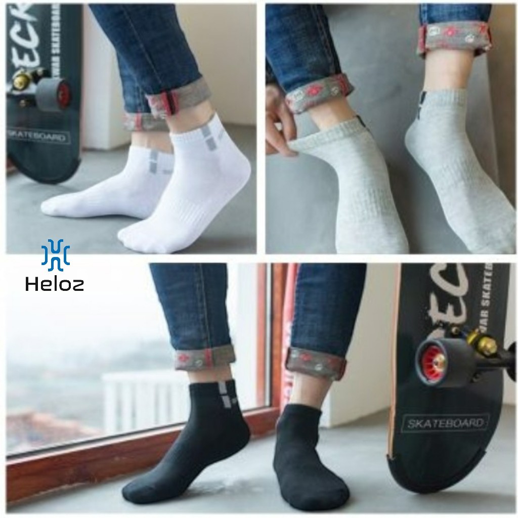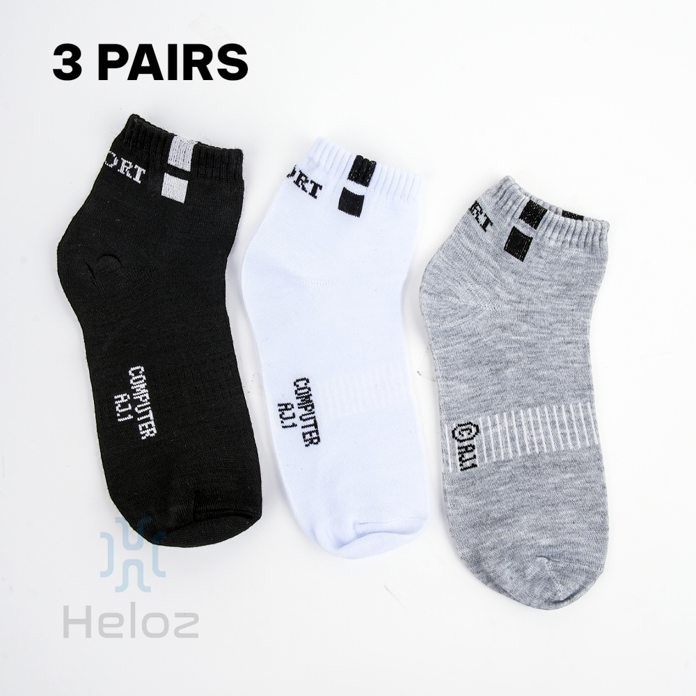 Kaos Kaki Olahraga Pendek Kotak Pria & Wanita Paket 3 Pasang, Katun Lembut Allsize Dewasa Heloz