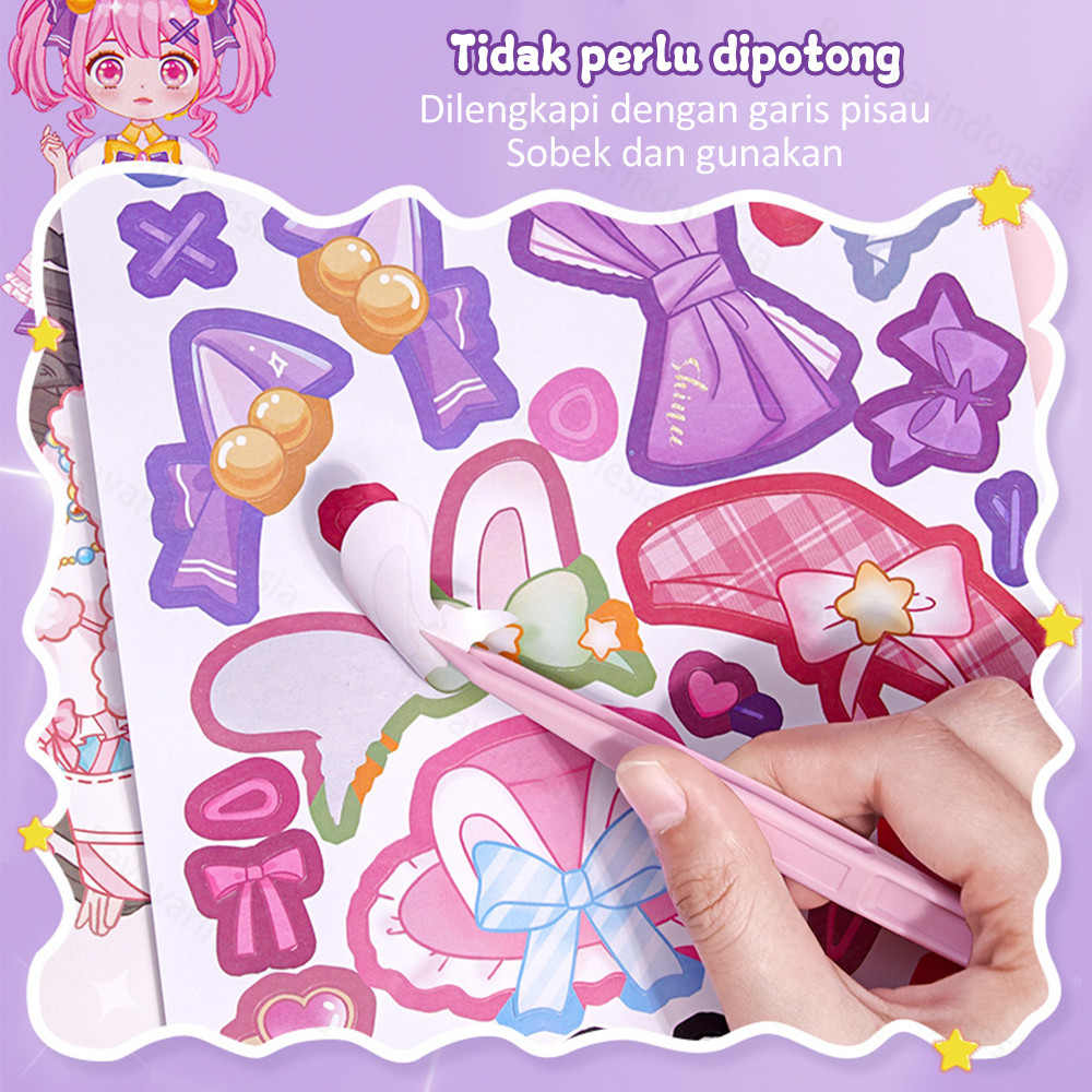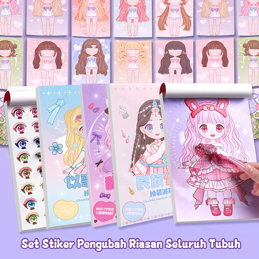 BEVAVAR Stiker Berdandan Make-Up Princess Style Stiker Diy Stiker Lucu Kartun Berdandan Anak Perempuan